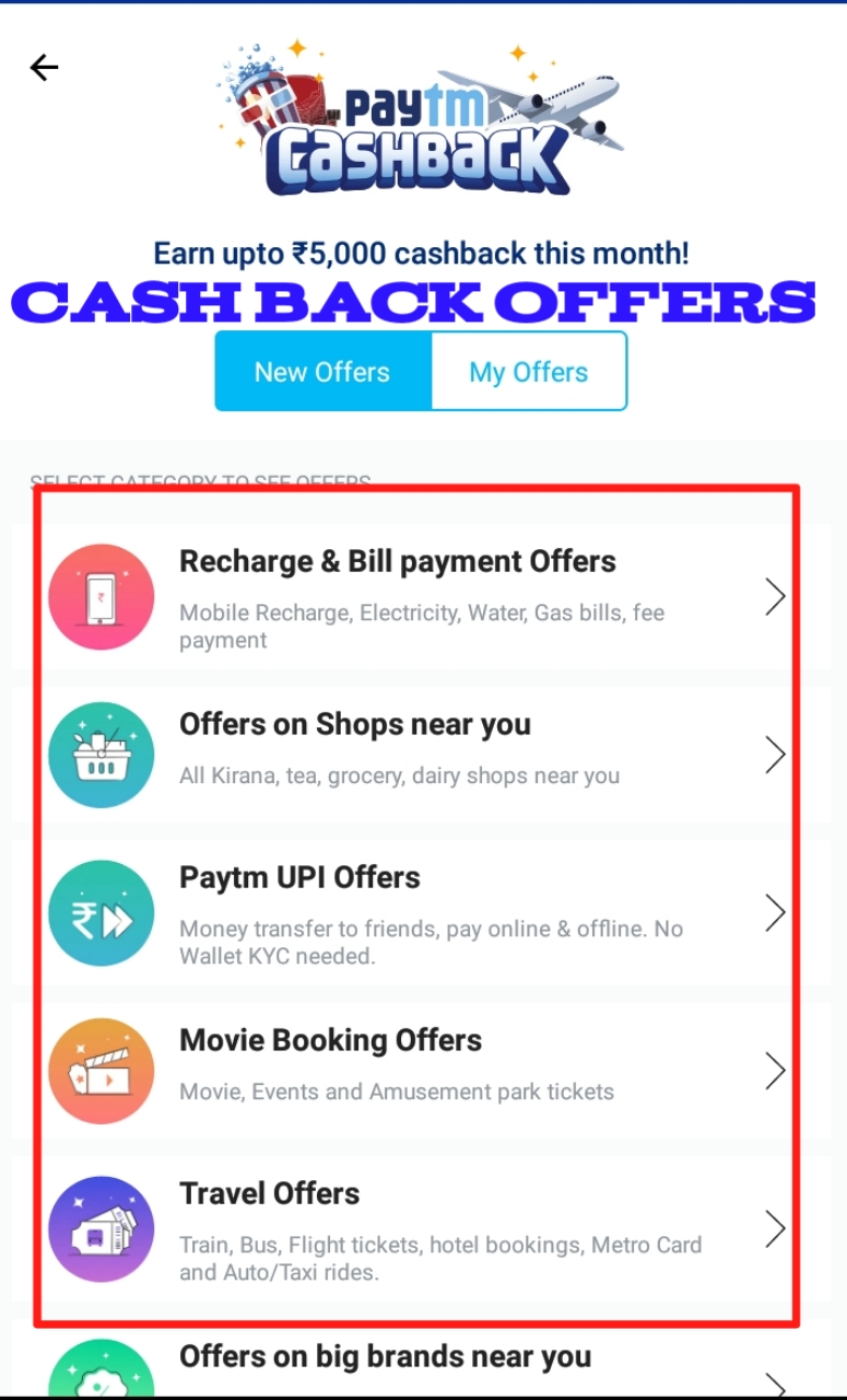 इस ऑप्शन में जाकर आप देख सकते हो कि अभी आपके पेटीएम अकाउंट में कौन-कौन सी offer चल रही है. जैसे कि मेरे अकाउंट में अभी एक स्कीम चल रही है कि अगर आप Paytm wallet से तीन रिचार्ज करते हो तो आपको ₹20 का कैशबैक मिलेगा और साथ में ₹200 का movie voucher भी मिलेगा. इसी तरह आपके पेटीएम अकाउंट में भी कुछ ना कुछ offers चल रही होगी. आप उस offer का लाभ ले सकते हो.