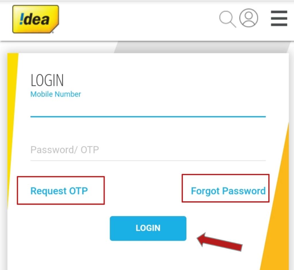 6. अभी आपने जो idea का mobile number enter किया है उस number पर एक OTP आएगा s.m.s. के द्वारा. उस OTP को enter करें. या फिर अगर आपने नया पासवर्ड generate किया है तो उस पासवर्ड को enter करें.