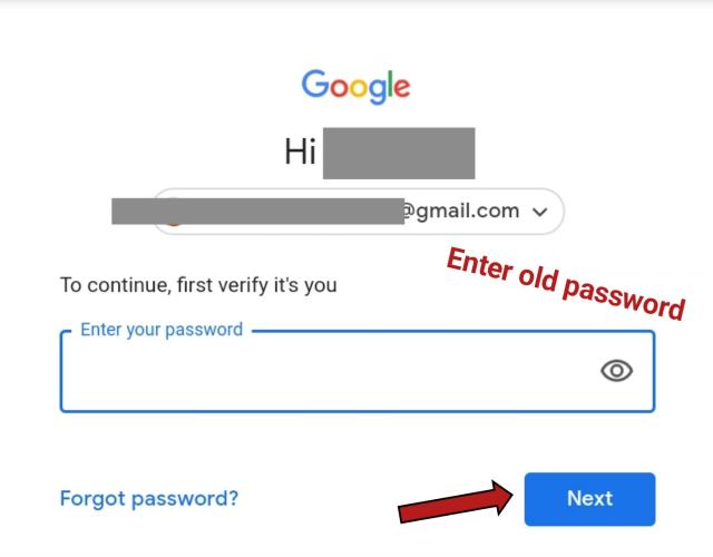 4. जसेही आप उस वाले ऑप्शन पर क्लिक करेंगे तो आपको जीमेल आईडी का पुराना पासवर्ड डालने को बोला जाएगा. आप उस जीमेल का पहला वाला password enter करके Next button पर click कर दीजिए.