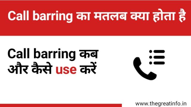 Call barring क्या होता है – call barring meaning in Hindi | हेलो दोस्तों, आज के इस आर्टिकल में हम आपको कॉल बैरिंग के बारे में पूरी जानकारी देने वाले हैं तो अगर आपको नहीं पता कि कॉल बैरिंग क्या है (call barring meaning in Hindi) और इसे कैसे use करते हैं तो चिंता ना करें क्योंकि इस आर्टिकल में कॉल बैरिंग से जुड़ी सारी जानकारी दी गई है.