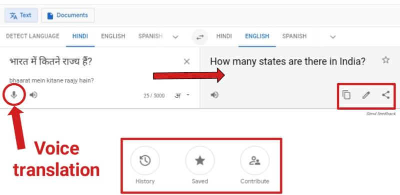 - आप हिंदी में लिखें बिना मतलब की आप हिंदी में बोलकर भी इसका इंग्लिश में ट्रांसलेशन कर सकते हैं. इसमें आपको voice translation का option दिया जाता है. मतलब कि आपको कुछ भी लिखने की जरूरत नहीं है आप सीधा बोल कर भी उसे English में convert कर सकते हैं.