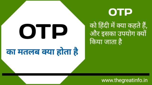 OTP का मतलब क्या होता है, ओटीपी को हिंदी में क्या कहते है? OTP full form in Hindi | दोस्तों आज इस article में हम OTP से जुड़ी पूरी जानकारी आपको देने वाले हैं और इस आर्टिकल को पढ़ने के बाद आपके मन में ओटीपी से जुड़े कोई भी सवाल नहीं रहेंगे. यहां पर हम आपको ओटीपी की सभी जानकारी सरल भाषा में देने की और समझाने की पूरी कोशिश करेंगे क्योंकि जानकारी देना तो हमारा काम है और उसे आसानी से समझाना भी हमारे काम का एक बहुत बड़ा हिस्सा है.